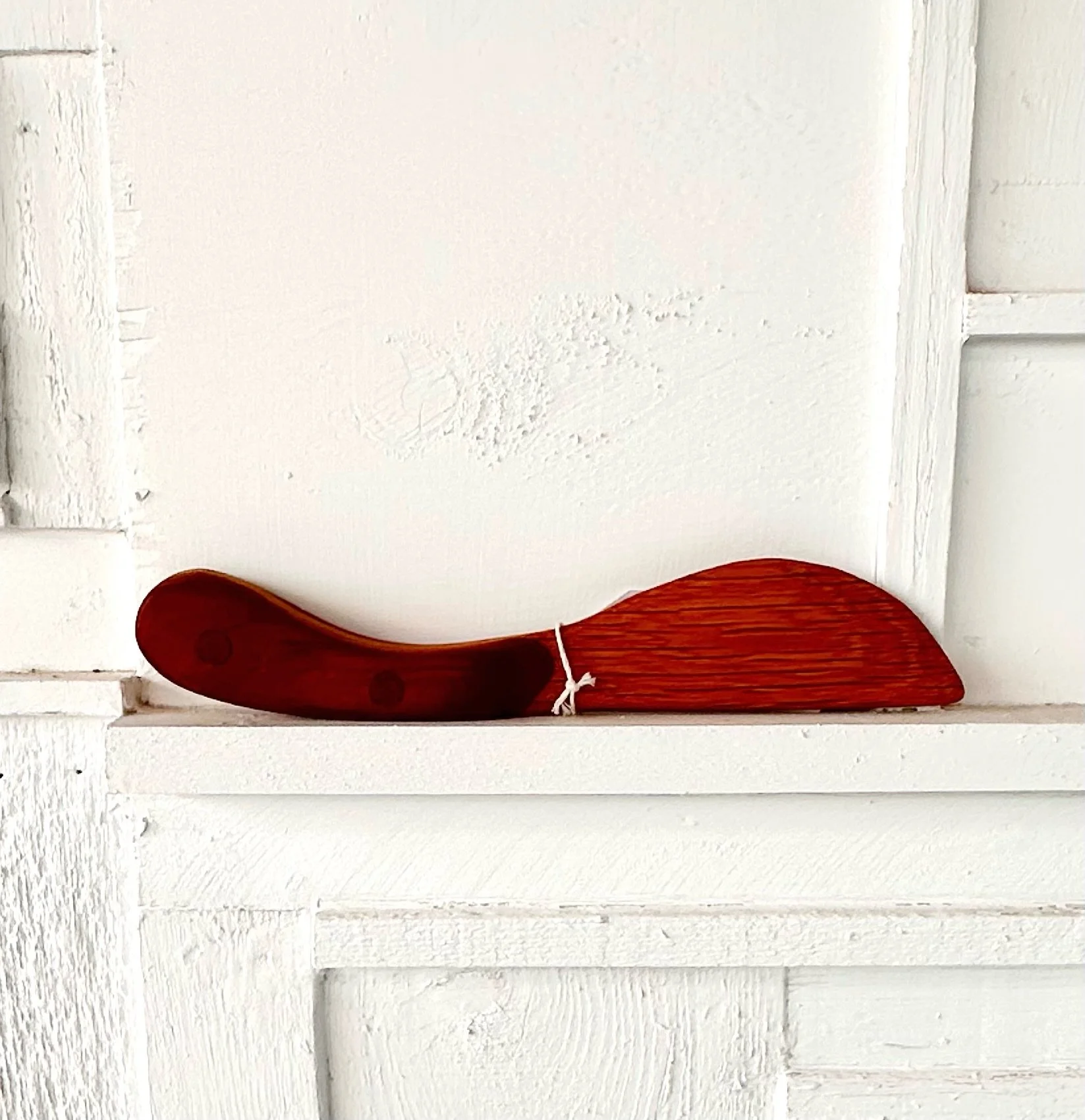 Cutting Boards and Utensils › Spreader/Cheese Knife #18 Spreader/Cheese Knife #18 $35.00 Hand MadeSpreader/Cheese KnifeMade from Oak (Blade) and Cherry (Handle)Food Safe Finish Hand MadeSpreader/Cheese KnifeMade from Oak (Blade) and Cherry (Handle)Food Safe Finish Add To Cart Added!