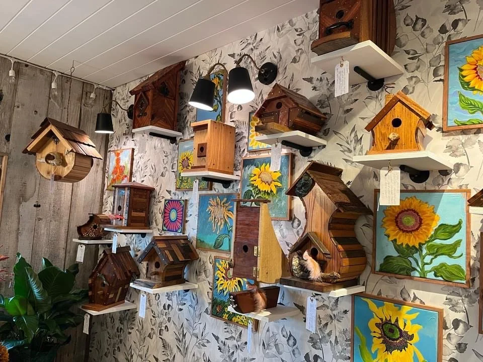 Feather Your Nest Beaufort showcases original art by Beverly Woodhall & custom woodwork from Phil Piurkoski